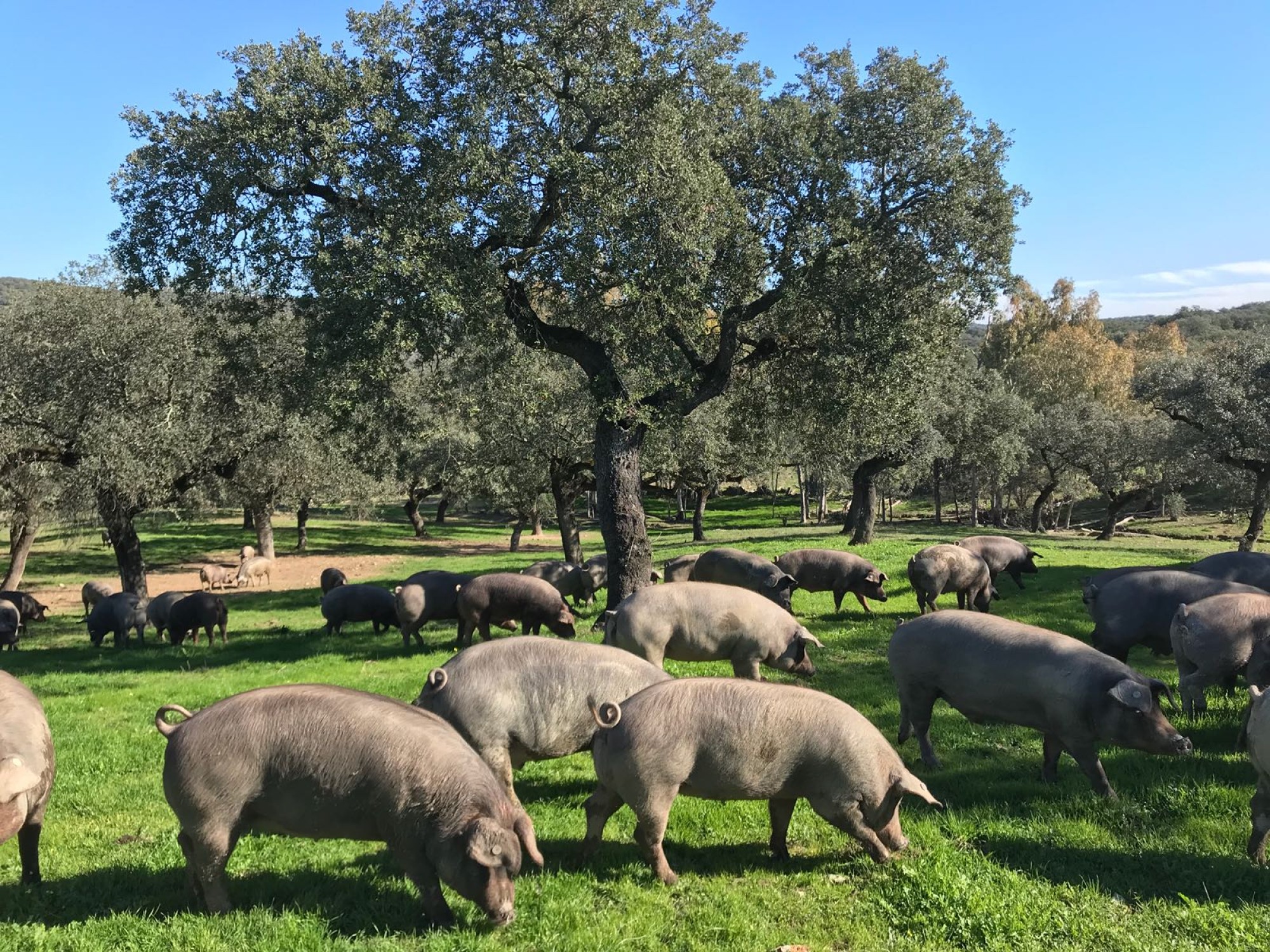Our Iberian pigs roam freely in the sun-drenched pastures (dehesas) of Extremadura and Andalucia, feeding on acorns and natural grasses. We work exclusively with Bellota and Cebo de Campo qualities, honouring the animal’s well-being and the integrity of its origin.